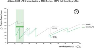 “These compelling results are supported by telematics data from DE Connect, providing CANbus information instantaneously for componentry functionality, vehicle fuel usage, and real-time vehicle tracking information, Allison’ iSCAAN data gathering and analysis tool, and finally our own in-house telemetry engineering system,” said Nathan Wilson, Account & Area Sales Manager UK & Republic of Ireland, Allison Transmission. “All systems aligned, showing fuel savings from the earlier lock-up in first gear. Achieving this reduces the time the transmission spends in lower gears, rather than torque-converter mode and allows engine speeds to be reduced by 400 rpm at the lock-up point. The xFE’s gear ratios in fifth and sixth are faster than those in the standard Allison transmissions, allowing greater efficiency at higher speeds and lower rpm, again reducing fuel consumption.”